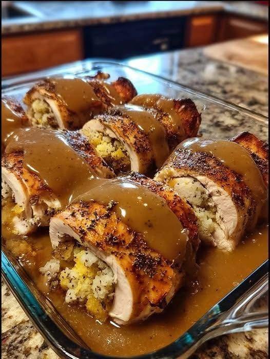 Here is a delicious, juicy, and comforting recipe for Air Fryer Stuffed Chicken Breast with Homestyle Gravy — crispy on the outside, tender inside, and packed with flavor.
