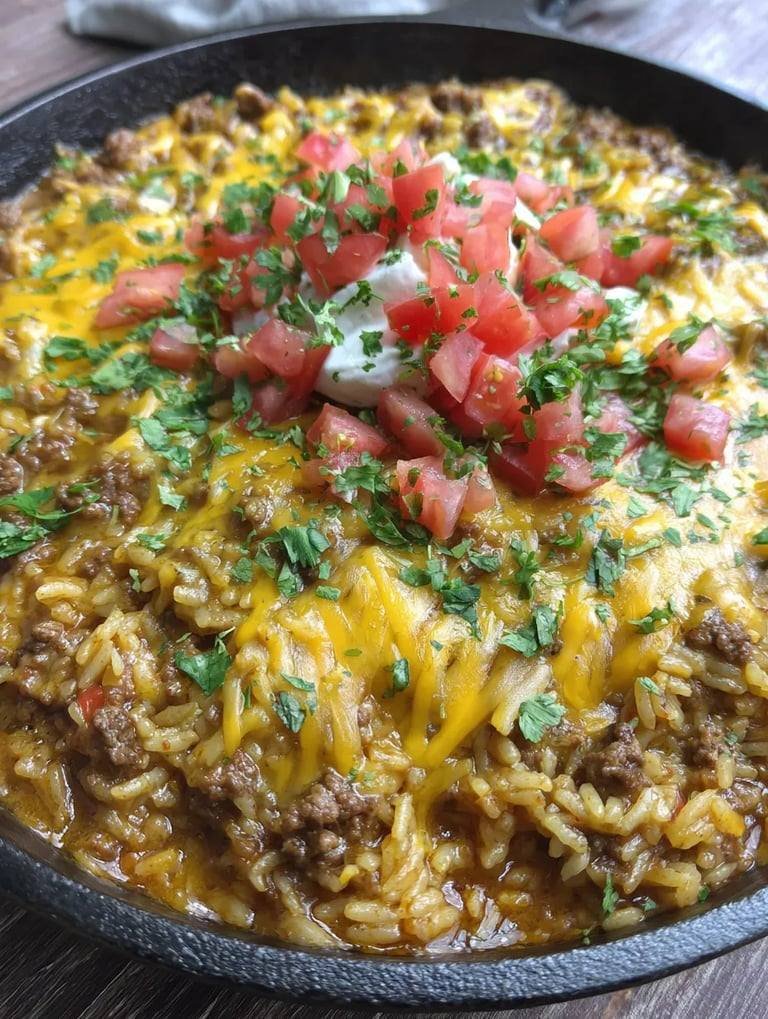 Here is a Cheesy Taco Rice Skillet recipe — a one-pan, weeknight-friendly comfort dinner that tastes like taco night meets creamy, cheesy rice!