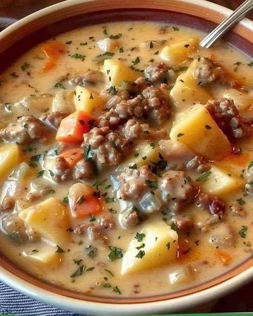 Here’s a cozy and hearty Creamy Potato Hamburger Soup recipe β loaded with ground beef, tender potatoes, veggies, and a rich, creamy broth. It’s budget-friendly, filling, and perfect for chilly days or a comforting weeknight dinner.