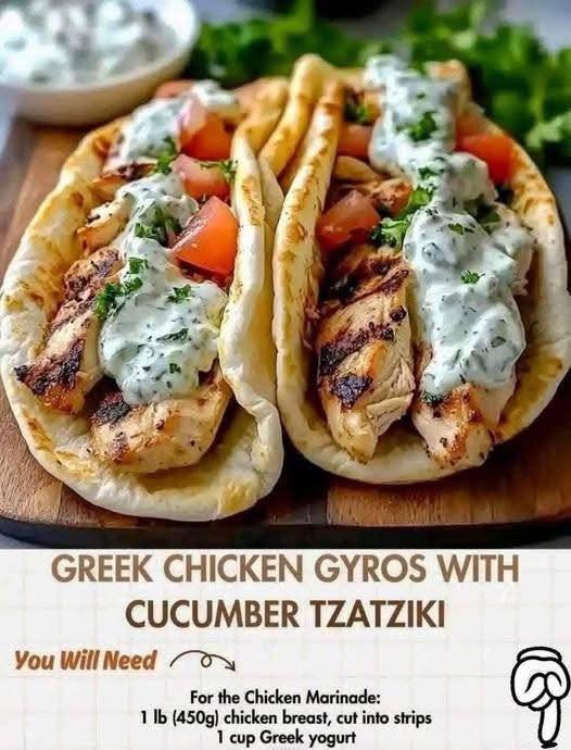 Here’s a delicious, classic Greek Chicken Gyros with Cucumber Tzatziki recipe — juicy marinated chicken, warm pita, and creamy, tangy tzatziki. Perfect for a homemade gyro night! 🇬🇷🥙